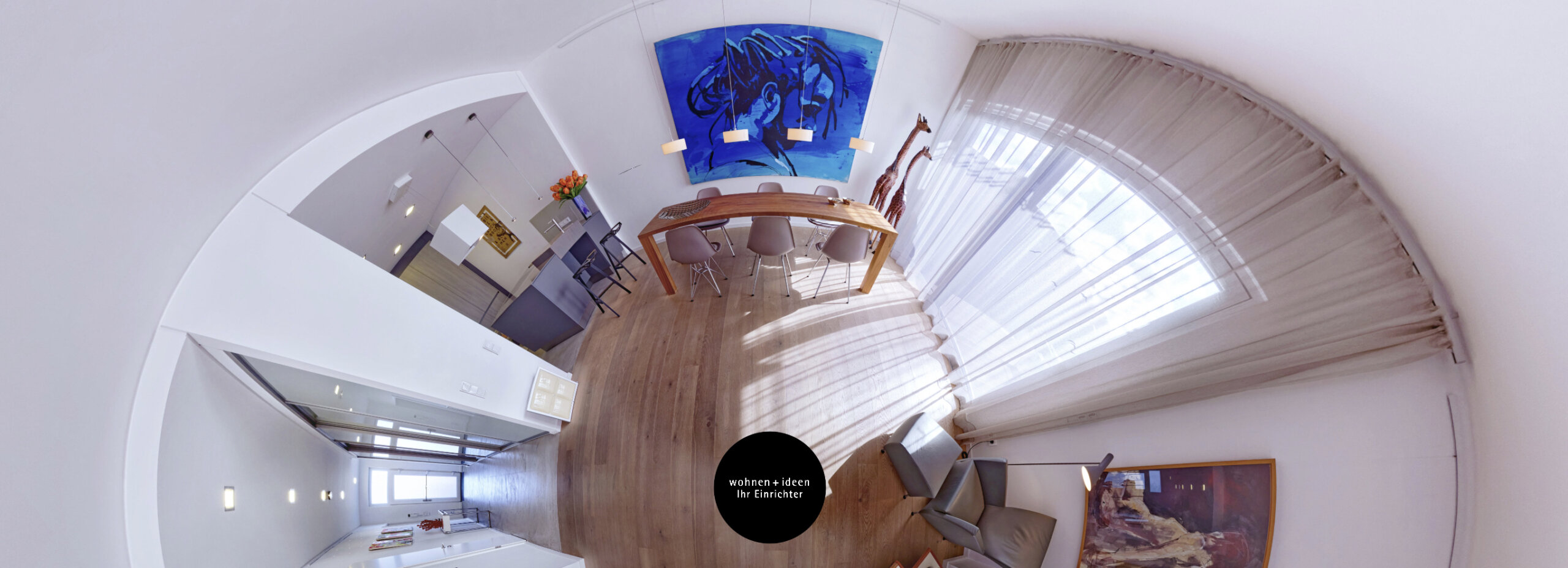 In einem 360°-Rundgang können Sie hier eines unserer exklusiven Wohnprojekte erkunden. Bewegen Sie das Panorama per Maus oder mit einem Finger in alle Richtungen, zoomen Sie näher an die Möbel, öffnen Sie die Hotspots, betreten Sie alle Räume und lassen Sie sich von der exquisit-qualitätsvollen Wohnlandschaft inspirieren.