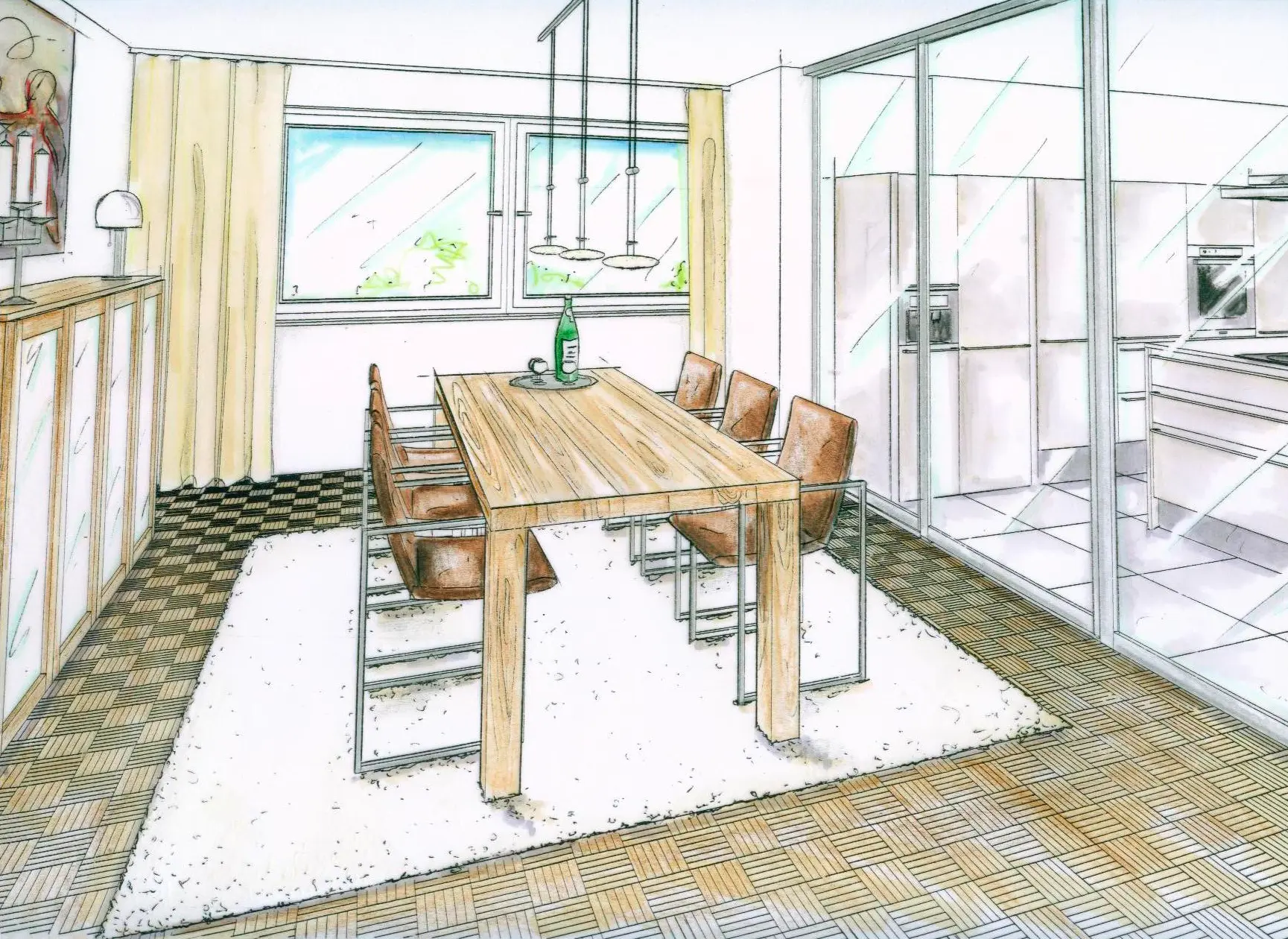Wir nehmen Sie von Anfang an bei der Hand und begleiten Sie durch den gesamten Prozess. Unsere Planung beginnt mit Ihren Vorstellungen, die wir mit präzisen Zeichnungen visualisieren. Wir erstellen individuelle Materialcollagen und erarbeiten passende Farbvorschläge, um eine stimmige und einzigartige Gestaltung zu schaffen.